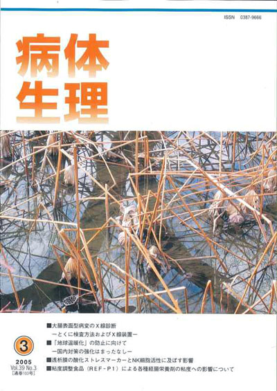 ■大腸表面型病変のX線診断 -とくに検査方法およびX線装置- ■「地球温暖化」の防止に向けて -国内対策の強化はまったなし- ■透析膜の酸化ストレスマーカーとNK細胞活性に及ぼす影響 ■粘度調整食品 (REF-P1) による各種経腸栄養剤の粘度への影響について |